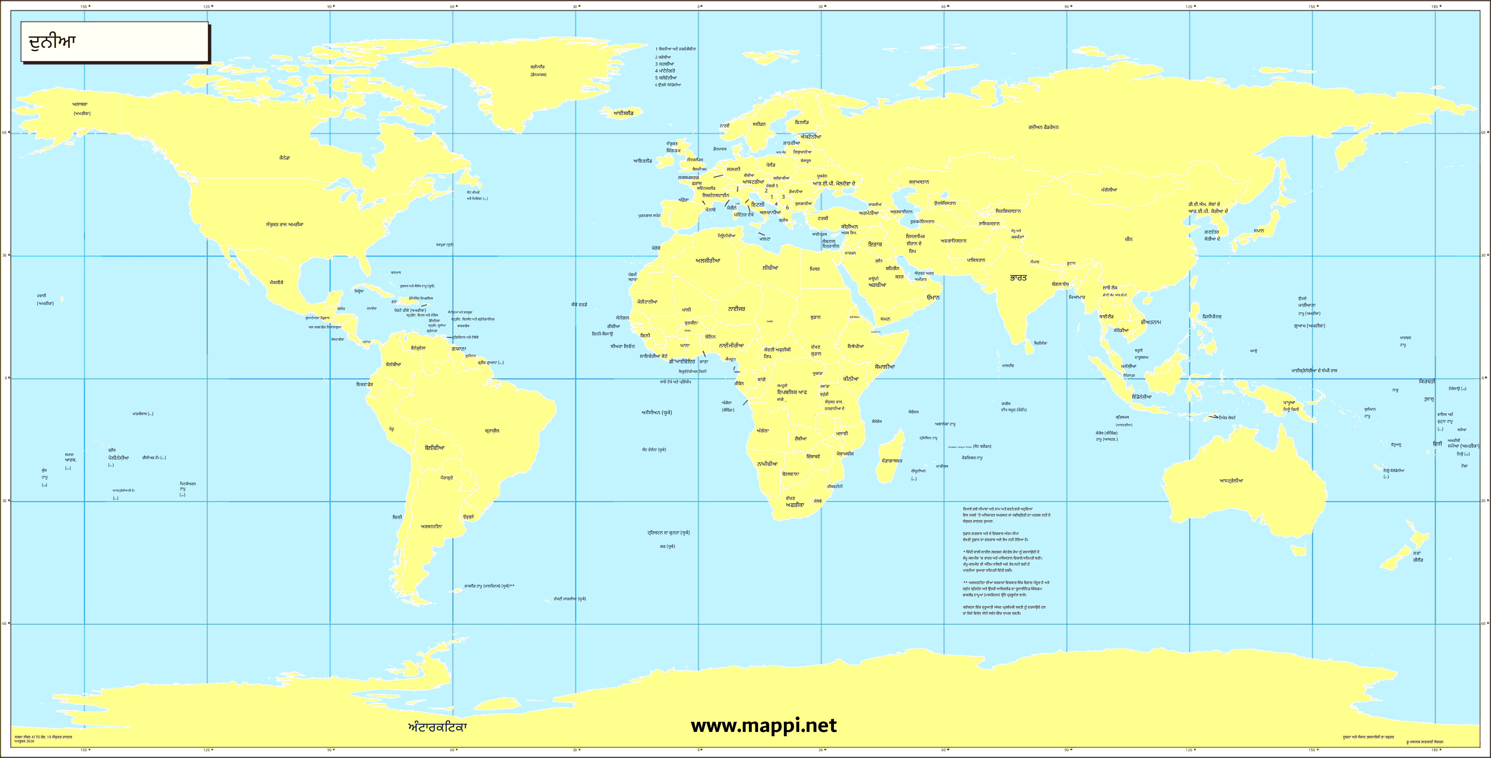 ਵੱਡਾ ਵਿਸ਼ਵ ਨਕਸ਼ਾ ਜਿਸ 'ਤੇ ਸਾਰੇ ਦੇਸ਼ਾਂ ਅਤੇ ਦੇਸ਼ਾਂ ਦੇ ਨਾਮ ਪੰਜਾਬੀ ਵਿੱਚ ਲਿਖੇ ਹੋਏ ਹਨ।